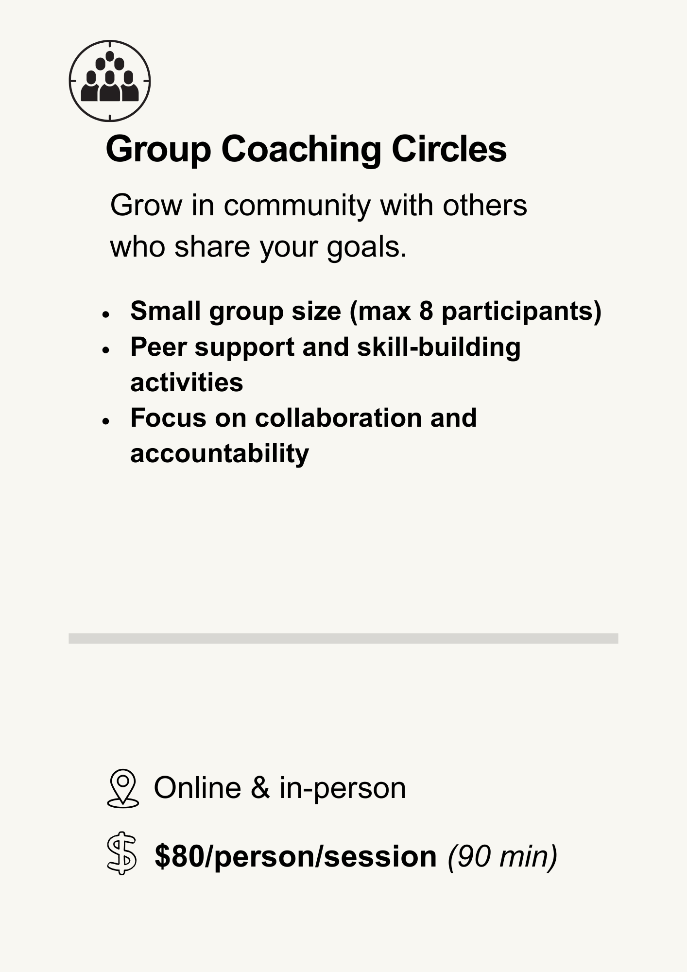 Together we’ll uncover your goals, identify obstacles, and outline the areas where support will make the biggest difference.